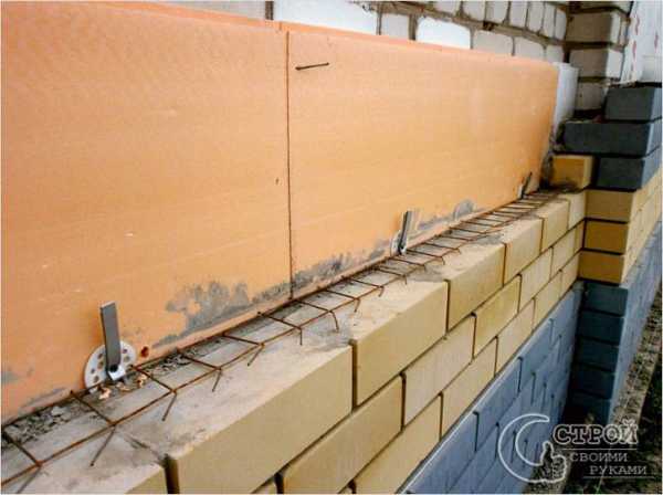 - Π‘ΡΠ°ΡΡΡ ΠΈ Π½ΠΎΠ²ΡΡ ΠΎΠ±Π»ΠΈΡΠΎΠ²ΠΎΡΠ½ΡΡ ΡΡΠ΅Π½Ρ Π½Π΅ΠΎΠ±Ρ ΠΎΠ΄ΠΈΠΌΠΎ ΡΠ²ΡΠ·Π°ΡΡ. ΠΠ»Ρ ΡΡΠΎΠ³ΠΎ Π² Π±Π°Π·ΠΎΠ²ΡΡ ΡΡΠ΅Π½Ρ Π²Π±ΠΈΠ²Π°Π΅ΡΡΡ 6ΠΊ-Π΄ΡΠ±Π΅Π»Ρ ΡΠ΅ΡΠ΅Π· ΠΊΠ°ΠΆΠ΄ΡΠ΅ 50β60 ΡΠΌ. Π Π½Π΅ΠΌΡ ΡΠΈΠΊΡΠΈΡΡΠ΅ΡΡΡ ΠΆΠ΅Π»Π΅Π·Π½Π°Ρ ΠΏΡΠΎΠ²ΠΎΠ»ΠΎΡΠ½Π°Ρ ΡΠ΅ΡΠ΅ΡΠΊΠ° Π²Π΅Π»ΠΈΡΠΈΠ½ΠΎΠΉ Ρ ΡΠΈΡΠΈΠ½Ρ ΠΊΠΈΡΠΏΠΈΡΠ½ΠΎΠ³ΠΎ ΠΎΡΠ΄Π΅Π»ΠΎΡΠ½ΠΎΠ³ΠΎ ΡΠ»ΠΎΡ. ΠΠΎΡΠ»Π΅ ΡΠΊΠ»Π°Π΄ΠΊΠΈ Π΅Π΅ Π½Π΅ Π΄ΠΎΠ»ΠΆΠ½ΠΎ Π±ΡΡΡ Π²ΠΈΠ΄Π½ΠΎ. ΠΡΠΌΠΈΡΠΎΠ²Π°Π½ΠΈΠ΅ ΠΏΠΎΠ²ΡΠΎΡΡΠ΅ΡΡΡ ΡΠ΅ΡΠ΅Π· ΠΊΠ°ΠΆΠ΄ΡΠ΅ 4 ΡΡΠ΄Π°.