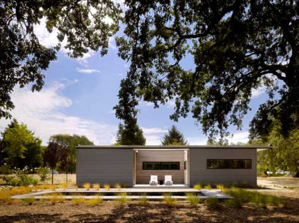Металлическая наружность делает дом визуально «легким», гармонично вписывая его в ландшафт