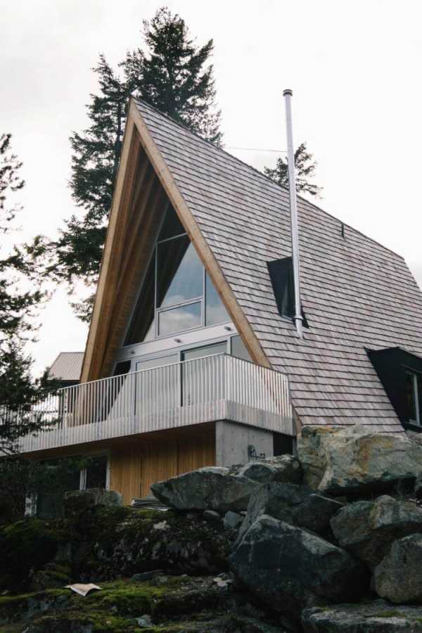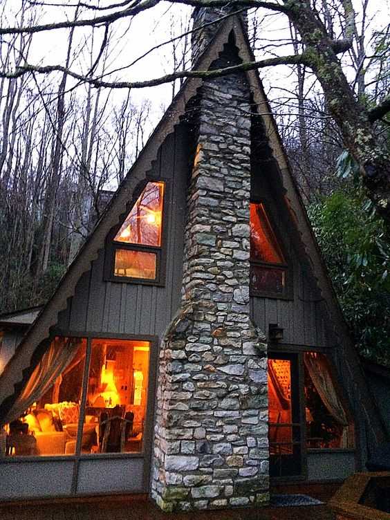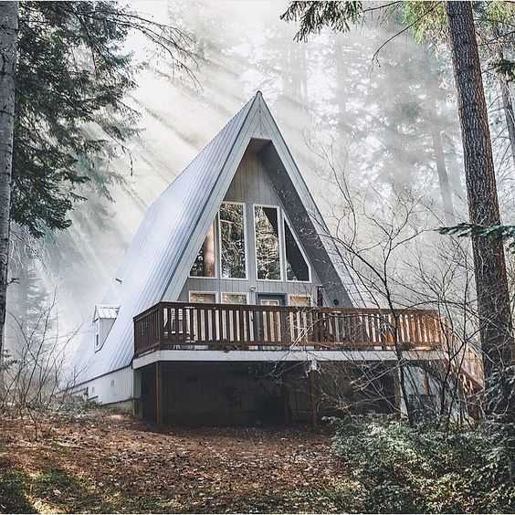 Треугольная форма дома шалаша может и не очень подходит для городских условий, зато это отличный вариант для загородных коттеджей. На природе – в лесу, в горах дом шалаш всегда выглядит естественно.