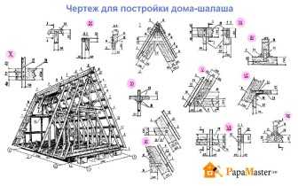 Если вы решили вести строительство дома-шалаша своими руками, то одного красивого фото вам недостаточно. Нужен ещё и тщательно разработанный проект, ведь немалое внимание нужно уделить расчёту несущей способности стропил.