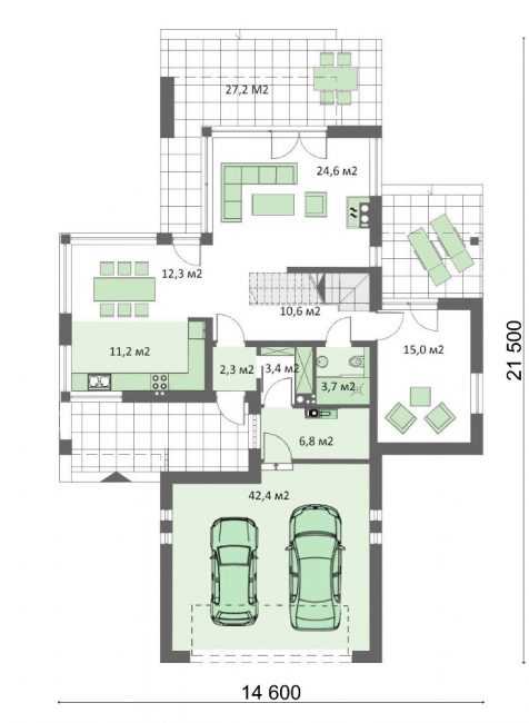 Автомобиль есть почти в каждой семье, место для гаража необходимо застройщика. Часто думают, что это дополнительные траты, а машина может и на улице постоять. Но если вы посмотрите на проект такого дома – устоять будет невозможно.
