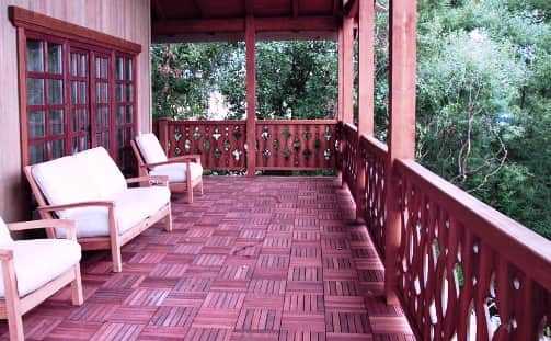 - Деревянный дом. Этот вариант особенно актуален для тех, кто предпочитает жить далеко за городом или же в лесной местности. Такие дома особенно хороши тем, что они уютные, долговечные и экологически безопасные для всех живых существ. Обработав древесину специальными антисептиками можно быстро соорудить потрясающий внешне и надежный дом на долгие годы. Если провести отделку дома внутри и снаружи, то можно получить сказочный домик, а сам материал очень податлив к обработке. Вырезая из древесины формы и фигурки можно сделать уникальную и уютную террасу.