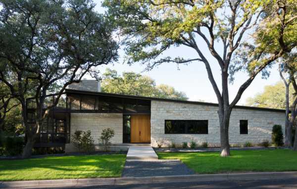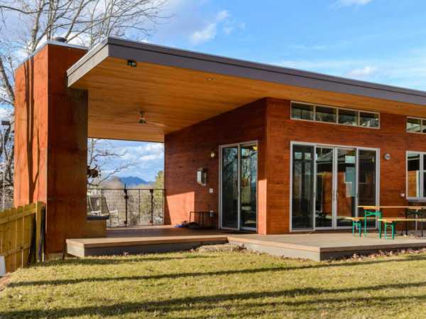 Одноэтажный современный дом с двумя террасами. Общая крыша для дома и террасы создает пристройку закрытого типа, а пристройка без крыши или другого навеса – это терраса открытого типа