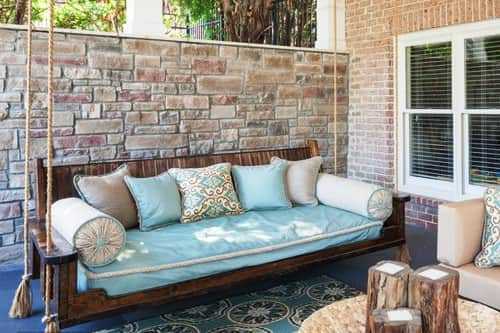 Чудесный долговечный материал. Многих он отпугивает из-за относительной дороговизны. Но если приверженец стройки на века – это ваш вариант. Удешевить проект можно следующим образом – сделайте веранду с огромными окнами от потолка до пола, тогда и стройматериала понадобится намного меньше, а вид будет потрясающим. Добавьте кованого металл аи витражей в качестве декора, и ваша веранда станет произведением искусства.