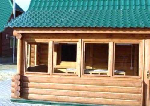 Применяют реже всего. Такой вариант сгодится для деревянных домов из оцилиндрованного бревна или бруса, поскольку другой материал будет существенно выбиваться из общей концепции здания. Преимущество древесины очевидно – экологичность позволяет использовать веранду в качестве кухни или комнаты для отдыха. Стоимость веранды к деревянному дому, конечно же обойдется не дешево, но оно того стоит.