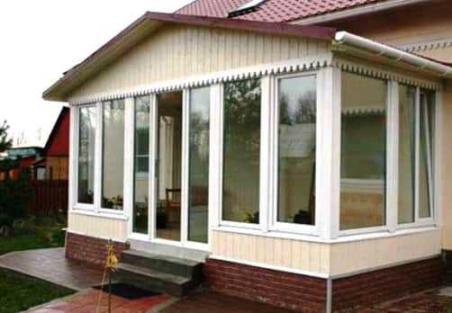 Несмотря на кажущуюся хрупкость, это отличный материал для строительства веранды. Пластиковыми панелями можно обшить стены из любого материала.
