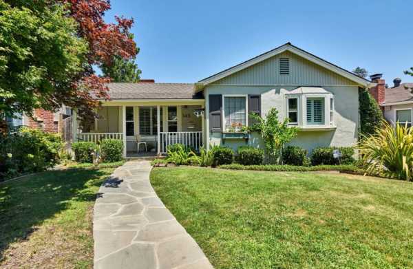 Небольшой одноэтажный дом с террасой и бассейном в традиционном американском стиле