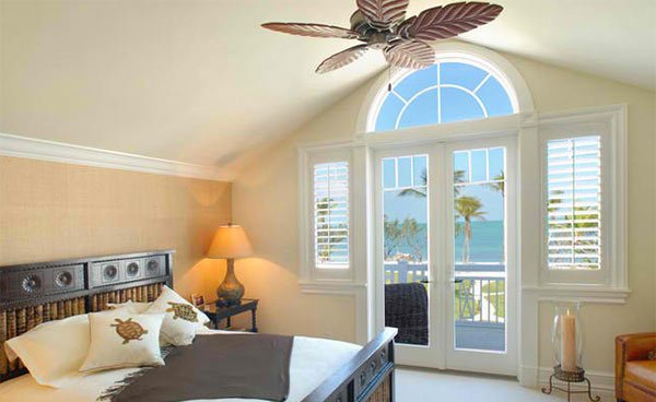 Помимо люстры на потолке, потолочный вентилятор также является хорошей идеей, как и в этой спальне.