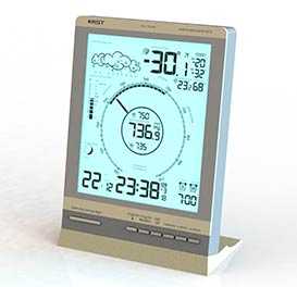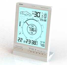 Высокая стройная красивая модель ослепительно белого цвета или комбинации «металик» с хромированной рамкой окаймляющей дисплей не оставит равнодушным любителей дизайна в стиле «high tech». Такая погодная станция станет украшением любого офиса или квартиры. Техническое оснащение впитало в себя технологии конструирования метео станций нового столетия.