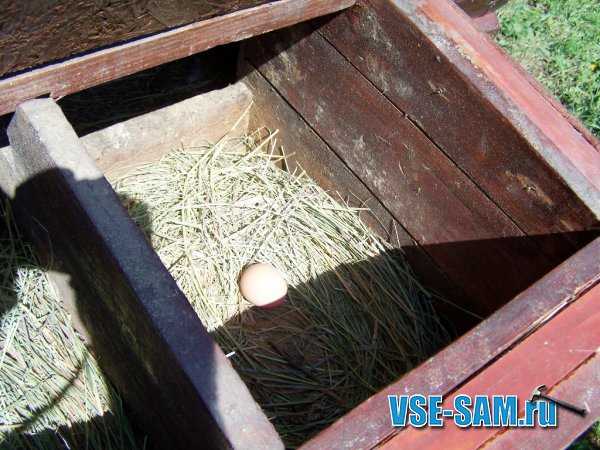 Также в курятнике должно быть место дня кладки яиц. Обычно это коробка или ящик с сеном.