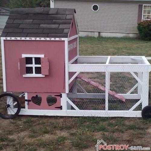 Также мобильную конструкцию можно перемещать на новое место, где трава будет посвежее. Есть, конечно, передвижные курятники, рассчитанные на большое количество птиц, однако их используют в основном только в фермерских хозяйствах.