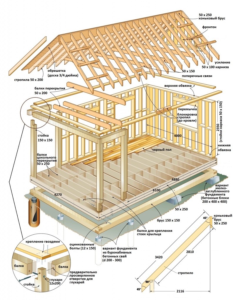 ΠΠ»Ρ ΡΠ±ΠΎΡΠΊΠΈ ΠΊΠ°ΡΠΊΠ°ΡΠ° Π΄Π΅ΡΠ΅Π²ΡΠ½Π½ΠΎΠ³ΠΎ Π΄ΠΎΠΌΠ° Ρ ΠΎΡΠΎΡΠΎ ΠΏΠΎΠ΄Ρ ΠΎΠ΄ΠΈΡ Π΄ΡΠ±ΠΎΠ²ΡΠΉ Π±ΡΡΡ. ΠΠ΄Π½Π°ΠΊΠΎ Π²Π²ΠΈΠ΄Ρ Π΅Π³ΠΎ Π²ΡΡΠΎΠΊΠΎΠΉ ΡΡΠΎΠΈΠΌΠΎΡΡΠΈ, ΠΌΠΎΠΆΠ½ΠΎ ΠΎΠ±ΠΎΠΉΡΠΈΡΡ ΡΠΎΡΠ½ΠΎΠ²ΡΠΌ Π±ΡΡΡΠΎΠΌ. ΠΠ±ΡΠΈΠ²Π°Π΅ΡΡΡ ΡΠ°ΠΊΠΎΠΉ ΠΊΠ°ΡΠΊΠ°Ρ ΡΠ½Π°ΡΡΠΆΠΈ ΡΠ°Π½Π΅ΡΠΎΠΉ Π»ΠΈΠ±ΠΎ ΠΠ‘Π. ΠΠ΅ΠΆΠ΄Ρ Π±ΡΡΡΠ°ΠΌΠΈ ΠΏΡΠΎΠΊΠ»Π°Π΄ΡΠ²Π°Π΅ΡΡΡ ΡΡΠ΅ΠΏΠ»ΠΈΡΠ΅Π»Ρ, ΠΈ ΠΈΠ·Π½ΡΡΡΠΈ ΡΠ°ΠΊΠΆΠ΅ ΠΏΡΠΎΠΈΠ·Π²ΠΎΠ΄ΠΈΡΡΡ Π·Π°ΡΠΈΠ²ΠΊΠ° Π»ΠΈΡΡΠΎΠΌ ΡΠ°Π½Π΅ΡΡ ΠΈΠ»ΠΈ ΠΠ‘Π.