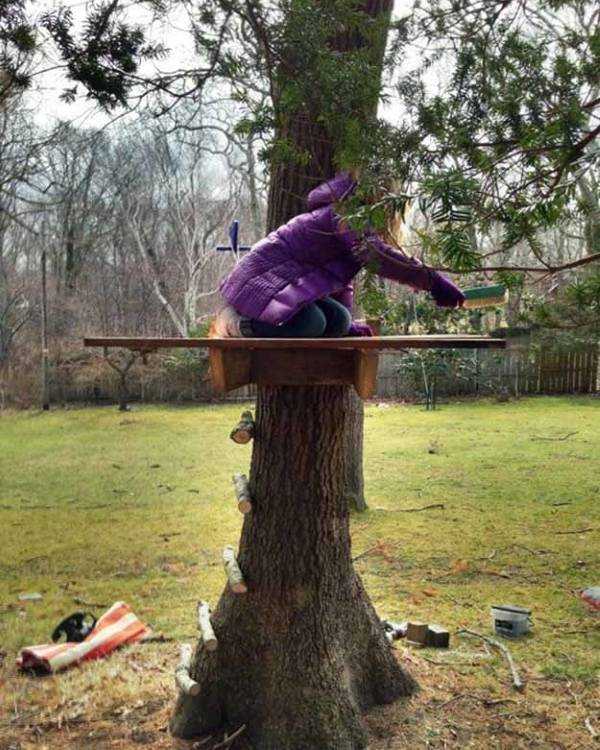 Даже если ваше дерево простое, без извилистых ветвей, на него можно смонтировать площадку и построить домик.
