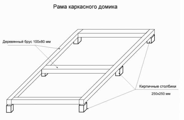 При отсутствии необходимого количества кирпича можно воспользоваться более бюджетным и быстрым вариантом: сделать раму из деревянных брусьев и установить её на кирпичи.