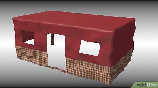 Такой вариант домика можно отнести как раз к тем самым «шалашам», про которые я упомянул выше, то есть из всего, что под руки попадётся, в данном случае это домик на месте стола. Плюс такого домика в скорости сборки, если маленьким детям тошно и негде поиграть, то этот вариант подходит в самый раз, чтобы соорудить такой детский домик самим, честно говоря, вам даже не придётся стараться, исключением будет только то, что у вас в доме нет стола, и придётся его делать самим.
