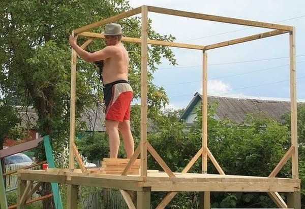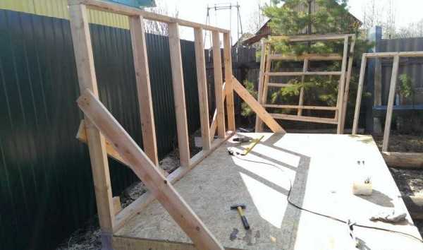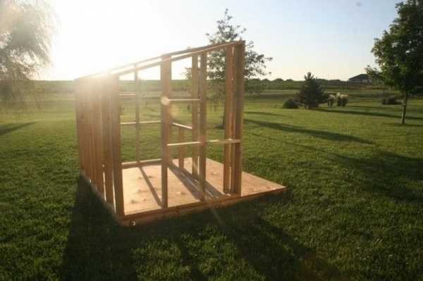 Для изготовления пола можно использовать деревянные доски или листы ОСБ. Каркас стен делают из брусьев, а стены обивают тем же материалом, который использовался для полов. При изготовлении каркаса из брусьев следует сформировать проемы для дверей и окон.