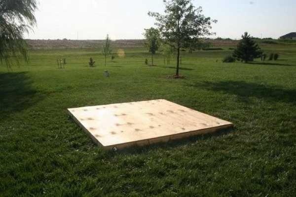 Для начала, как это обычно происходит, выбирается место для будущего сооружения и приводится в порядок, в соответствии с тем, что должно быть в конечном итоге. Итак, площадка выбрана и пора приступать к строительству. Основание будущего строения автор решил изготовить из шпал. Сложил из них квадрат. Между собой их скрепил строительными уголками. Все измерил уровнем, чтобы строение было ровным и без уклонов, иначе впоследствии будет очень непросто выровнять.