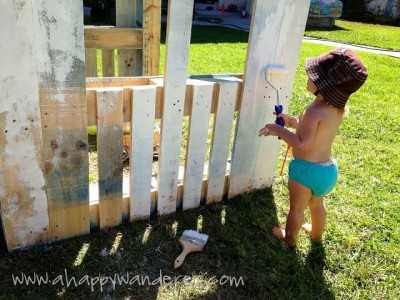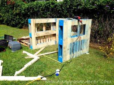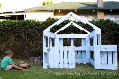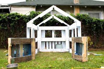 Детский домик из поддонов почти готов – осталось вставить окна и покрасить его.