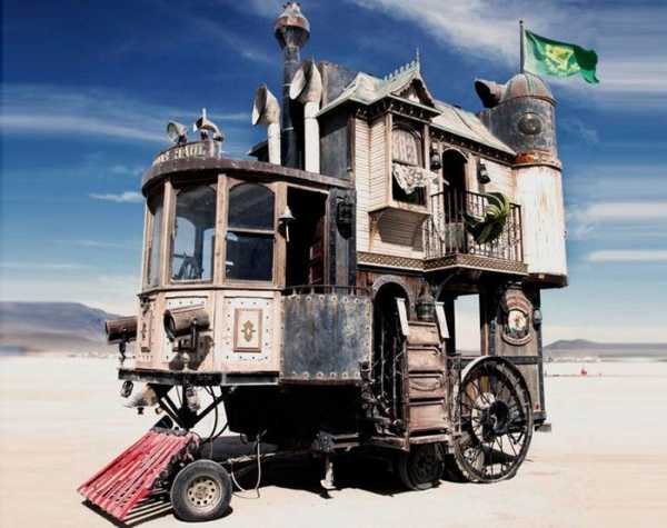 А теперь вернемся в викторианскую эпоху к паровым двигателям. Этот шедевр представила художница Шеннон О’Хара на ежегодном фестивале Burning Man. Эпатажный стимпанковский дом на колесах Neverwas Haul работает на угле, то есть вполне соответствует викторианскому стилю.