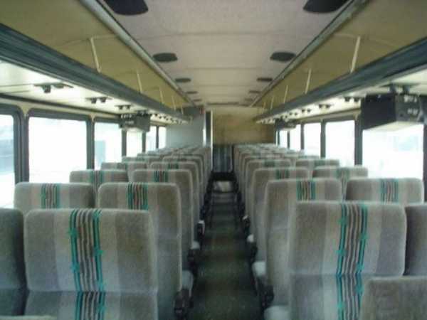 Внешне автобус напоминает исторический бронетранспортер. Похоже, решили не перекрашивать в более веселые цвета из соображений безопасности.