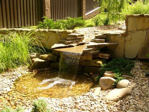 ΠΡΠ»ΠΈ Π² ΡΠ°Π΄Ρ ΡΠ°ΡΠΏΠΎΠ»Π°Π³Π°Π΅ΡΡΡ ΠΈΡΠΊΡΡΡΡΠ²Π΅Π½Π½ΡΠΉ Π²ΠΎΠ΄ΠΎΠ΅ΠΌ, Π²ΠΎΠ΄ΠΎΠΏΠ°Π΄, ΡΠΎΠ½ΡΠ°Π½, ΠΏΠΎΠ΄Π²ΠΎΠ΄Π½Π°Ρ ΠΏΠΎΠ΄ΡΠ²Π΅ΡΠΊΠ° ΠΏΠΎΠ·Π²ΠΎΠ»ΠΈΡ Π°ΠΊΡΠ΅Π½ΡΠΈΡΠΎΠ²Π°ΡΡ ΡΠ΅Π΄ΠΊΠΈΠ΅ ΡΠ°ΡΡΠ΅Π½ΠΈΡ, ΠΏΡΠΈΡΡΠ΄Π»ΠΈΠ²ΠΎΠΉ ΡΠΎΡΠΌΡ, ΠΏΠ»Π°Π²Π°ΡΡΠΈΡ ΡΡΠ±ΠΎΠΊ ΠΈΠ»ΠΈ ΠΈΠ½ΡΠ΅ΡΠ΅ΡΠ½ΡΠ΅ ΠΊΠΎΠΌΠΏΠΎΠ·ΠΈΡΠΈΠΈ ΠΈΠ· ΠΊΠ°ΠΌΠ½Ρ. ΠΡΠΎΠ±Π΅Π½Π½ΡΡ ΡΠ°ΠΈΠ½ΡΡΠ²Π΅Π½Π½ΠΎΡΡΡ Π±ΡΠ΄Π΅Ρ ΠΏΡΠΈΠ΄Π°Π²Π°ΡΡ ΡΠ°ΡΠΏΠΎΠ»ΠΎΠΆΠ΅Π½Π½Π°Ρ ΡΡΠ΄ΠΎΠΌ ΡΡΠΌΠ°Π½ΠΎΠΎΠ±ΡΠ°Π·ΡΡΡΠ°Ρ ΡΡΡΠ°Π½ΠΎΠ²ΠΊΠ°. ΠΠ»Ρ ΠΎΡΠ²Π΅ΡΠ΅Π½ΠΈΡ ΠΏΠΎΠ΄ Π²ΠΎΠ΄ΠΎΠΉ ΠΈΡΠΏΠΎΠ»ΡΠ·ΡΡΡΡΡ ΡΠ²Π΅ΡΠΈΠ»ΡΠ½ΠΈΠΊΠΈ, Π²ΡΠΏΠΎΠ»Π½Π΅Π½Π½ΡΠ΅ ΠΈΠ· ΠΊΠ°ΡΠ΅ΡΡΠ²Π΅Π½Π½ΠΎΠΉ ΡΡΠ°Π»ΠΈ ΠΈ Π½Π΅ ΠΏΡΠΎΠΏΡΡΠΊΠ°ΡΡΠΈΠ΅ Π²ΠΎΠ΄Ρ.