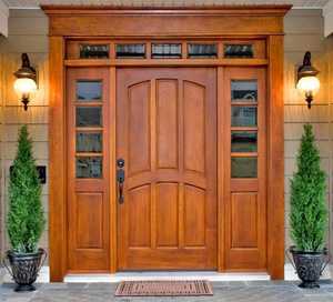 Полезный совет! При выборе деревянной двери на вход в частный дом нужно обратить внимание, чтобы изготовлена она была из массива древесины, а не из спрессованных стружек. В противном случае, через 2 – 3 года дверь придется менять.