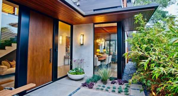 Входная дверь из массива дерева прекрасно вписывается в стиль современного дома