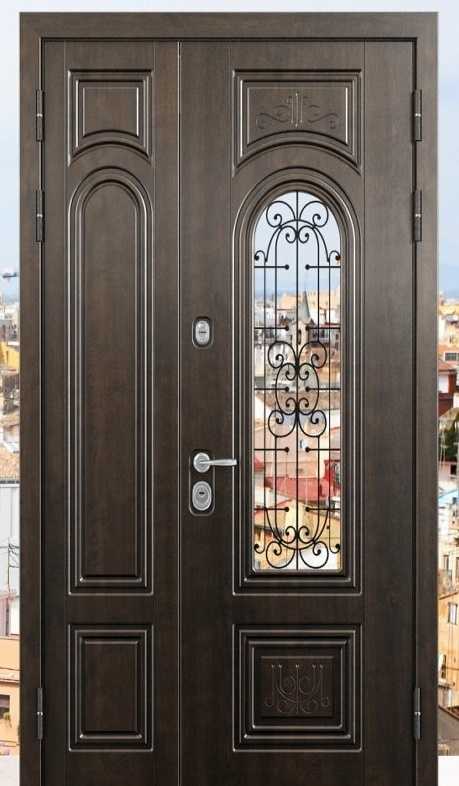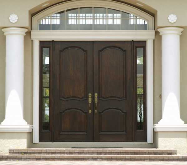 Парадные двери отличаются своим внешним видом. Они выглядят очень массивно и имеют значительные размеры. Зачастую они изготовляются в виде двустворчатой конструкции.