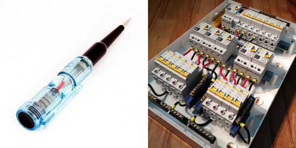 13. Еще обязательно иметь такую вещь, как индикаторная отвертка. Их есть две разновидности. Оригинальный прибор с неоновой лампочкой без источника питания способен определять только фазное напряжение. Это же простой китайский прибор с источником питания имеет более расширенный функционал и позволяет определять не только фазу (важно! для определения фазы нельзя касаться пальцами колпачка отвертки), но и целостность линии, а также место обрыва проводника. Справа первоначальная заготовка для электрического щитка. При коммутации важно распределить все таким образом, чтобы было интуитивно понятно где что находится.