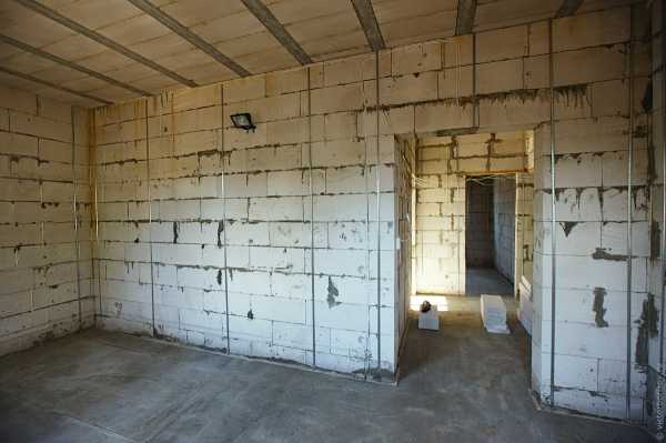 9. Уголок кухонной зоны. Газобетон просто превосходный материал для обработки — штробить стены можно хоть обыкновенной отверткой. Итак, сверлим отверстия под монтажные и распределительные коробки. Провод в стенах из НЕГОРЮЧИХ оснований прокладывается в том виде, в каком он есть. Никакие гофры не требуются. Всё внимание на трассы. Силовые линии прокладываются только под прямыми углами. Основная линия идет вдоль пола на высоте 20-30 см, далее к розеткам и выключателям поднимается строго ВЕРТИКАЛЬНО. Диагональная прокладка запрещена и опасна риском попасть в провод, например при вбивании гвоздя в стену (а так вы точно знаете что нельзя вбивать гвозди ровно под розетками и над выключателями). К стене кабель крепится с помощью пластиковых круглых скоб (сверлится два отверстия, вставляется скоба).
