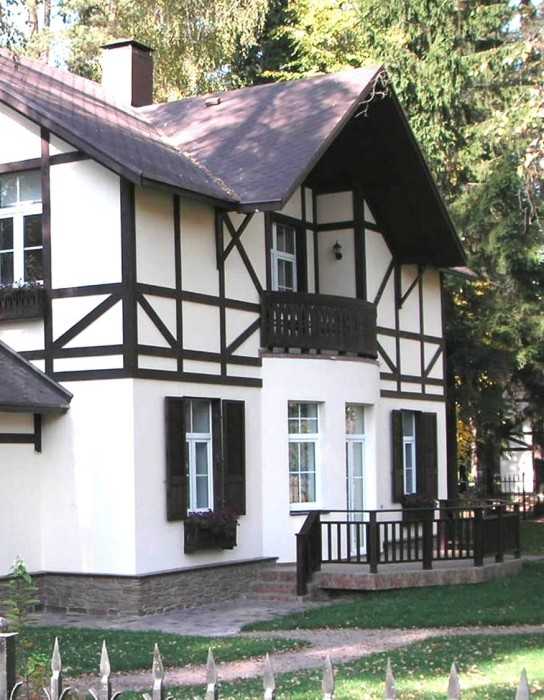 Немного об имитации фахверка. Имитация или внешняя отделка фасада, как вы понимаете, осуществляется значительно проще, чем задача построить дом в этом стиле. Следует отметить, что всю работу вполне возможно выполнить своими руками. В качестве основы служит готовый дом, для постройки которого применялись любые виды строительных материалов.