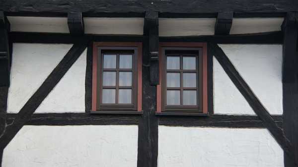 Немецкие дома фахверк имеют характерную особенность- это балки, они сразу бросаются в глаза. Они и есть, та самая конструктивная основа всех старых зданий, поскольку использовались в первую очередь как каркас дома. Одновременно балки украшали фасад, для чего их выкрашивали в темные тона, если дерево было светлым. Пространство между балками, по замыслу архитекторов и строителей должно контрастировать с ними, для чего использовались только светлые тона.