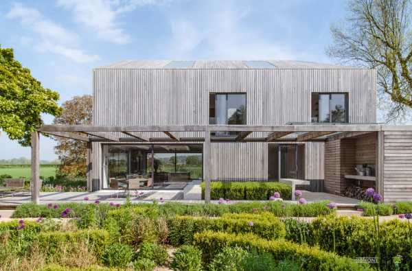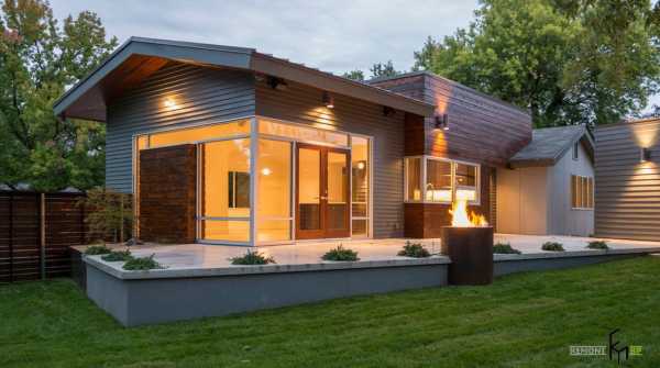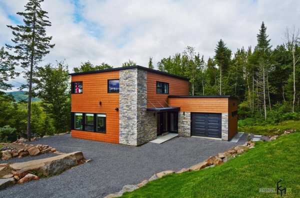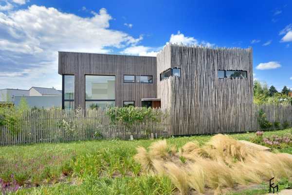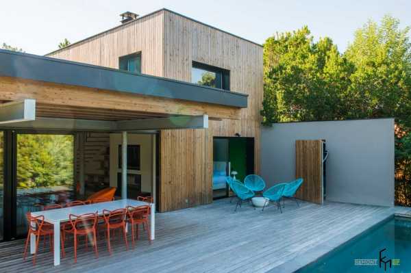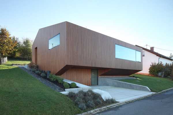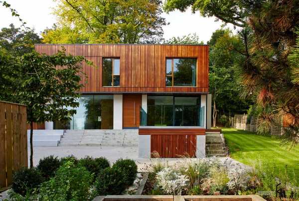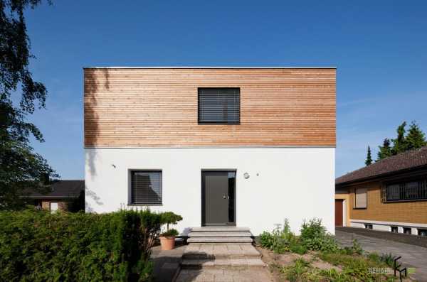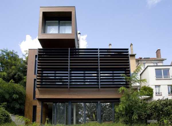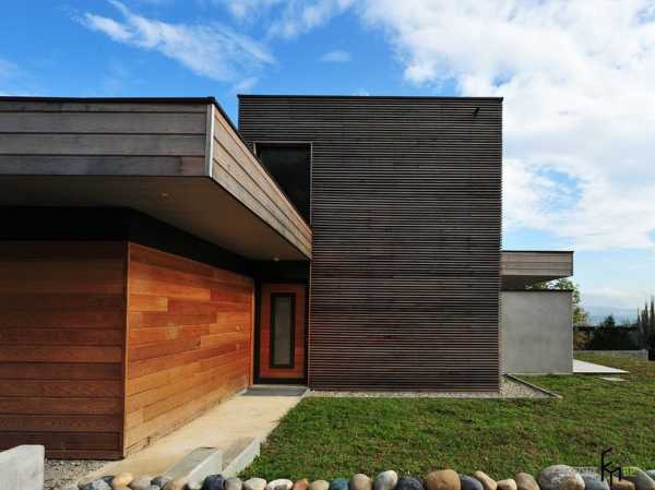 Дома более скромных размеров зачастую полны контрастов с точки зрения выбора цветового спектра. Применение реечного способа отделки вертикальных поверхностей также часто встречается в современных частных зданиях.