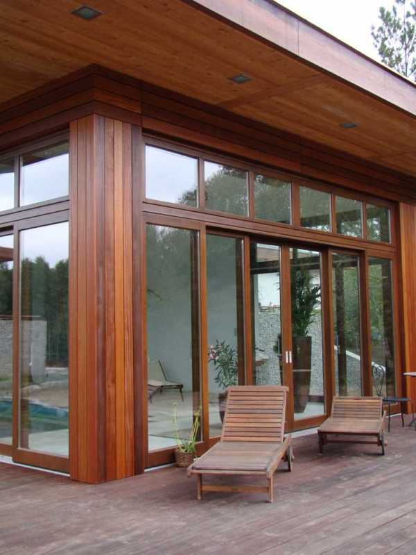 Обоими типами покрытия успешно выполняется имитация натурального бруса, после чего любой кирпичный или блочный дом визуально преобразуется в стильный деревянный коттедж. Для создания неповторимого и стильного экстерьера часто используются комбинированные стеклодеревянные панели. Они позволяют зданию «дышать», но при этом имеют более презентабельный вид, чем стандартные доски.