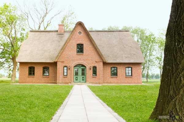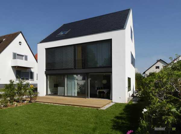 Скромный и уютный немецкий фасад имеет оригинальный и добротный вид. Отличается от остальных практичностью, необычностью и экономичностью. Такие дома обычно стоят в виде прямоугольника или квадрата. Окна должны быть либо арочные, либо прямоугольные. Главное, чтобы они были разделены на несколько секций. Крышу обычно