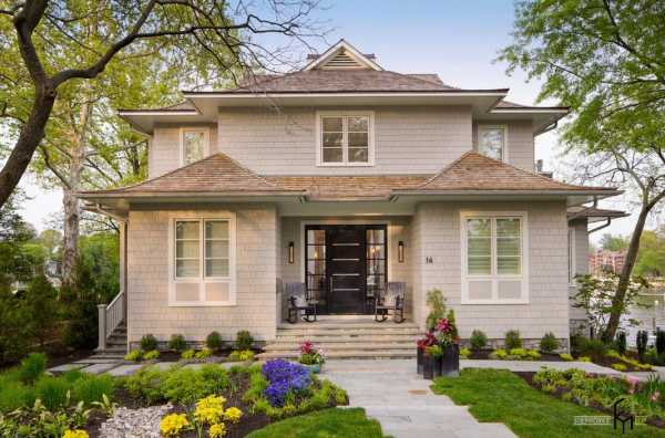 Для отделки готового дома используют только древесину, натуральный и искусственный камень или кирпичную кладку. Крыша должна быть из крашеных металлов либо из черепицы. Цокольные помещения, как заметно и на представленном фото, не характерны для этого стиля.