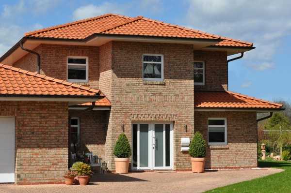 Π€Π°ΡΠ°Π΄ Π΄Π²ΡΡ ΡΡΠ°ΠΆΠ½ΠΎΠ³ΠΎ Π΄ΠΎΠΌΠ° ΠΈΠ· ΠΊΡΠ°ΡΠ½ΠΎΠ³ΠΎ ΠΊΠΈΡΠΏΠΈΡΠ° Ρ Ρ Π°ΡΠ°ΠΊΡΠ΅ΡΠ½ΡΠΌΠΈ ΡΠ΅ΡΡΠ°ΠΌΠΈ ΡΠΎΠ²ΡΠ΅ΠΌΠ΅Π½Π½ΠΎΠ³ΠΎ ΡΡΠΈΠ»Ρ, Π½ΠΎ ΡΠ²Π½ΡΠΌ ΠΈΠ½Π΄ΠΈΠ²ΠΈΠ΄ΡΠ°Π»ΡΠ½ΡΠΌ Ρ Π°ΡΠ°ΠΊΡΠ΅ΡΠΎΠΌ
