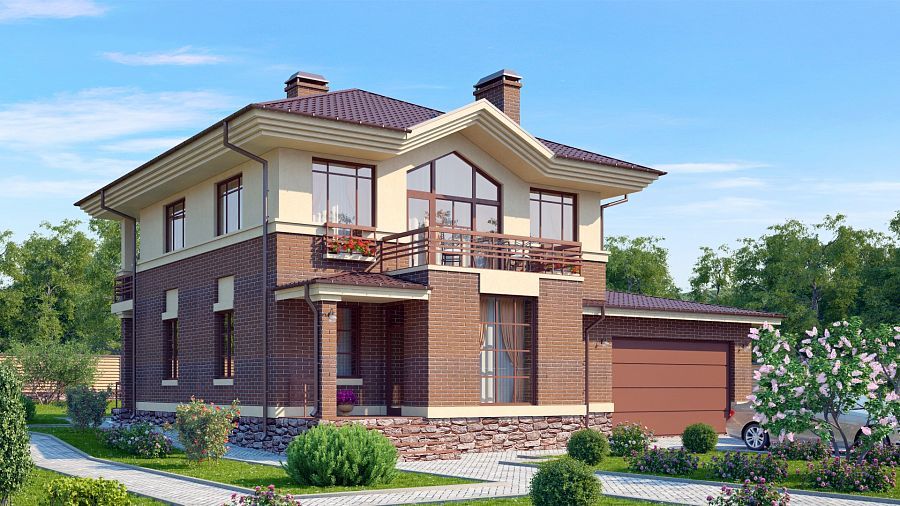 ΠΡΠ°ΡΠΈΠ²ΡΠΉ Π΄Π²ΡΡ ΡΡΠ°ΠΆΠ½ΡΠΉ ΠΆΠΈΠ»ΠΎΠΉ Π΄ΠΎΠΌ Ρ ΠΌΠ°Π½ΡΠ°ΡΠ΄Π½ΡΠΌΠΈ ΠΎΠΊΠ½Π°ΠΌΠΈ ΠΈ ΠΏΡΠΈΡΡΡΠΎΠ΅Π½Π½ΡΠΌ Π³Π°ΡΠ°ΠΆΠΎΠΌ