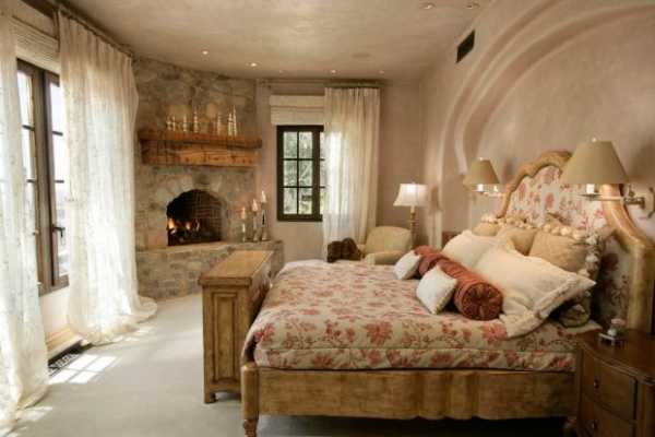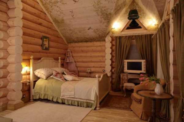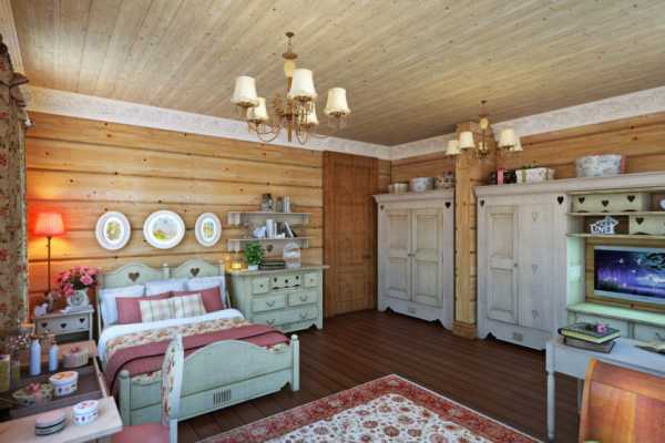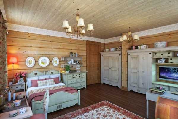 Оформление спальни в частном доме должно соответствовать общему интерьеру. Если дом выполнен и дерева, то спальню можно оформить в стиле прованс, например.
