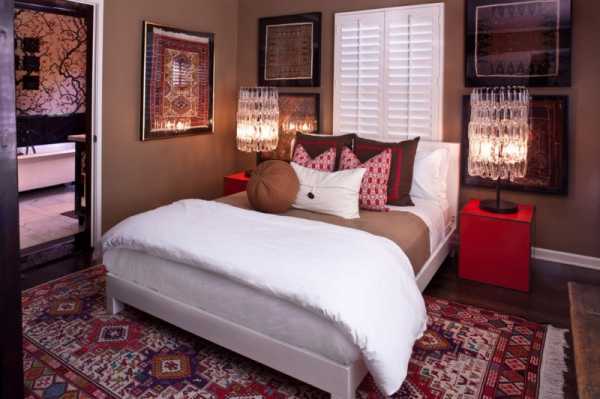 Ковры на стенах будут выглядеть старомодно. Поэтому, если Вы хотите, чтобы у вас была красивая спальня в доме, лучше оформить стены рамками с фотографиями или рисунками.