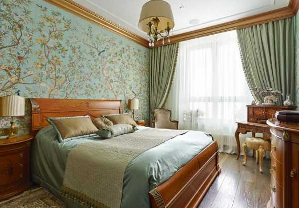 Классический стиль не обязательно должен быть дворцовым. Можно его сделать и по-домашнему уютным и спокойным. Это достигается благодаря особенностям стиля – приглушенной светлой палитре и использованию натуральных материалов. Мебель из дерева, плавные линии, преобладание нежного светло-зеленого оттенка в отделке – природное сочетание формы и цвета.