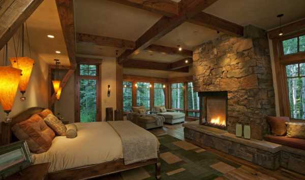 А как может выглядеть спальня в современной горной хижине? Все так же, как и предписывают традиции – гармоничное единство камня и дерева. Но на современном уровне.