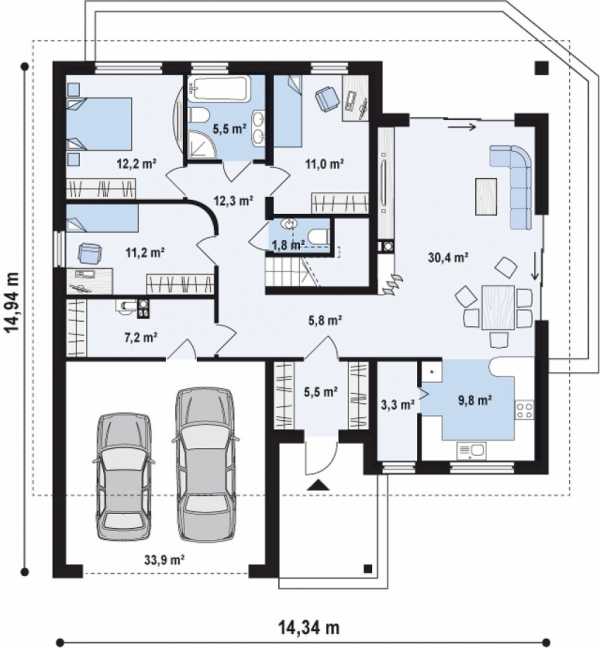 Одноэтажные дома с гаражом: фото-проекты
