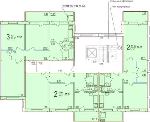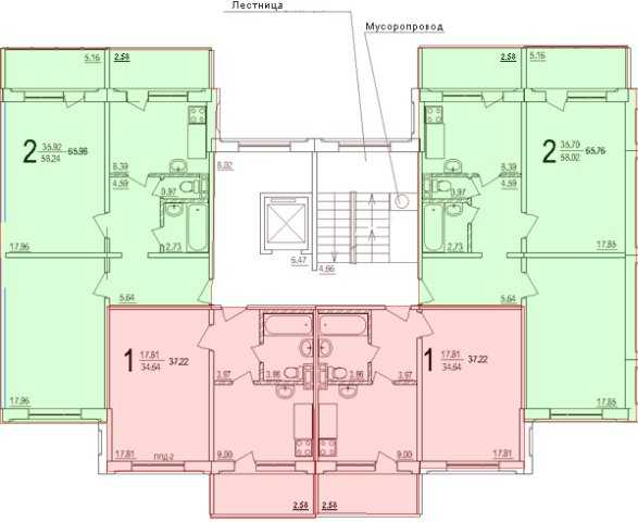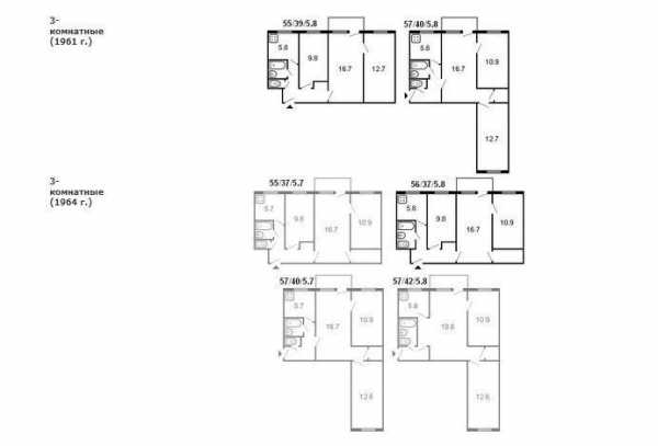 - 3-комнатные с общей площадью 55-58 м²;