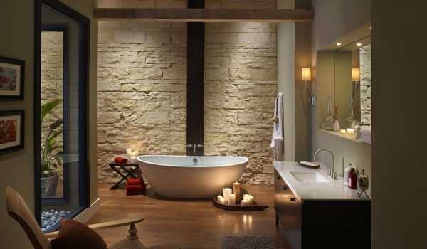 Иногда камень покрывают специальным лаком, такое решение выглядит очень эстетично.