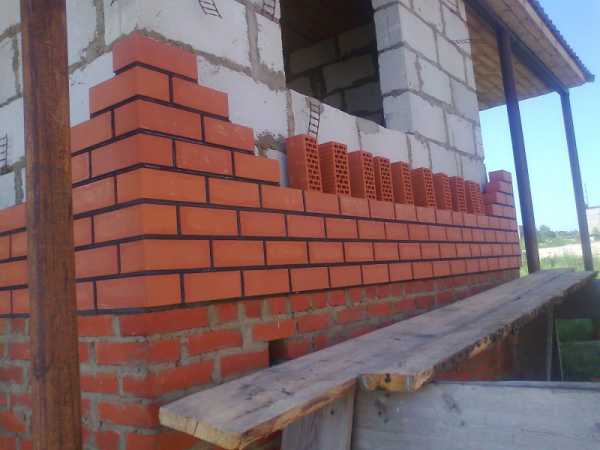 При новом строительстве облицовка выполняется одновременно с основной кладкой. Стены возводят и сразу же их облицовывают.
