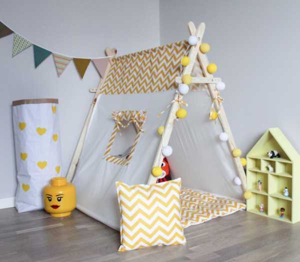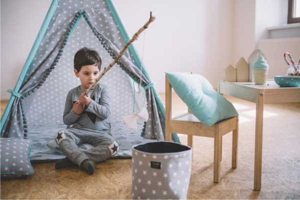Главное, чтобы в квартире было достаточно места для размещения постройки из дерева, многие родители предпочитают домик из картона или палатку из ткани – они занимают меньше квадратных метров, и их удобно хранить.