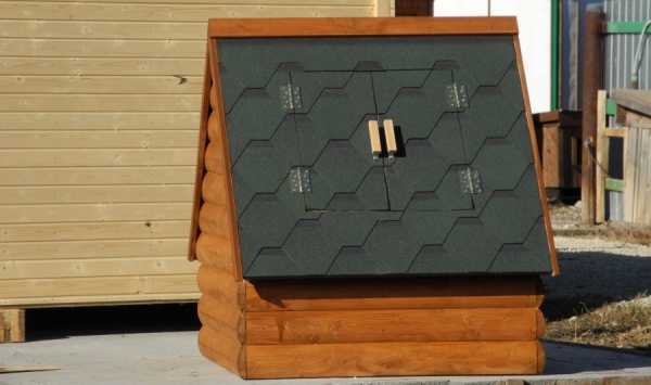 Закрытый вариант напоминает мини-домик и отличается более сложной утепленной конструкцией с надежными замками и опорами. Крыша в таком случае обязательна.