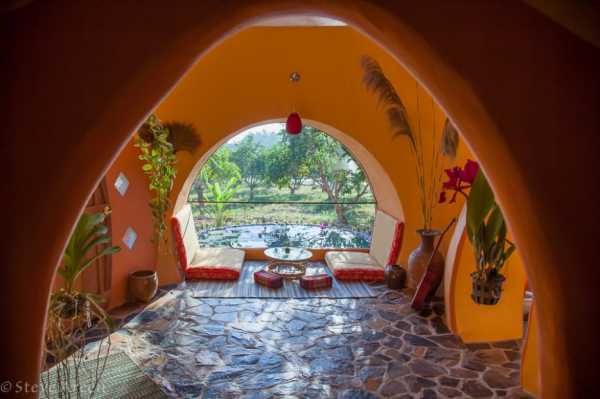 После шести недель неустанной работы и вложения 9000 $ Steve Areen построил себе этот домик мечты в Таиланде. Две трети суммы ушло на возведение собственно конструкции здания (6000 $), а остальные 3000 $ были потрачены на необходимые детали и мебель. Дом включает в себя места для отдыха и личный пруд, а всё, что находится под куполом, сделано из натуральных компонентов.