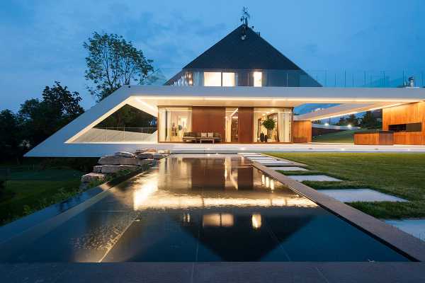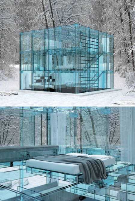 Самые красивые дома, по мнению экспертов, находятся в Нидерландах. Здесь находят воплощение в жизнь наиболее интересные, креативные и необычные идеи. Архитектор PauldeRuiterсоздает эксклюзивные дома по индивидуальным заказам своих друзей. Для одной семейной пары коллекционеров произведений искусства он построил на берегу озера двухэтажный дом с полностью стеклянным первым этажом. Второй этаж – массивный, объемный, с отделкой из натурального дерева, резко контрастирует со стеклянной основой и создает впечатление зависшей в воздухе конструкции.